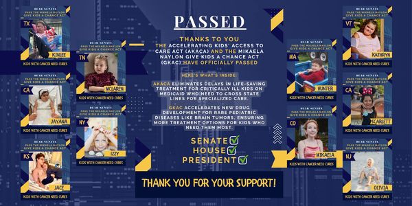 In the summer of 2025 patient families & foundations came together to encourage the House & Senate to pass the Mikaela Naylon Give Kids a Chance Act with committees sending emails, creating and sharing graphics, providing templates and tools for patients and their families to urge government officials to pass this critical piece of legislation.
