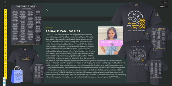 Our May Awareness Collection includes 3 new designs that feature the names of our patients in the fight and those we've lost on the back. The sleeve features a QR code that directs to the link below when scanned.