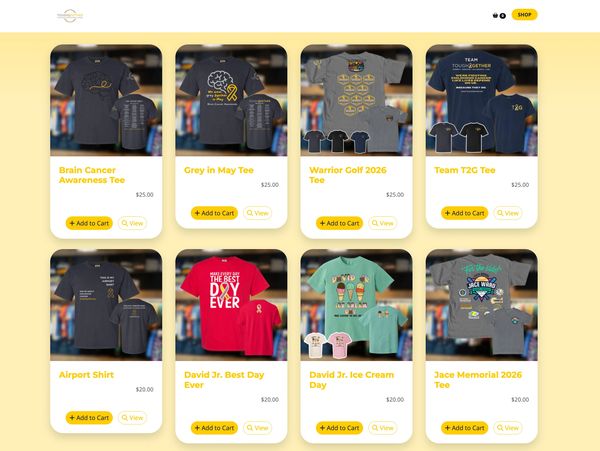 Spread awareness with our family fund shirts designed by our families, grab products from events that sold out, and suggest new designs with the new and improved online store
